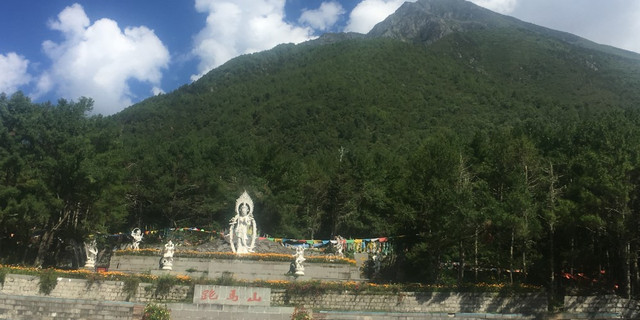 康定的跑马山,就是大雪山的家族之一。近百年来,中外闻名,在于《康定情歌》首句:“跑马溜溜的山上,一朵溜溜的云啊!”引起的,山因歌而扬名的,世界上确也不少。跑马山是突出的一个。不过,丽日晴天,这山却常有几朵云逍遥其间,任人去自托情愫跑马山腰台地,藏名“登托”,意为垫子。北宋时在这台地山坪修建了拉姆寺(仙女寺),香火兴旺,盛时有喇嘛700余人,后焚于战火。清代,明正土司于农历五月十三日在“登托”山坪祭把山神,并举行赛马会,远近农牧民中骑术使住者,都前来参赛。