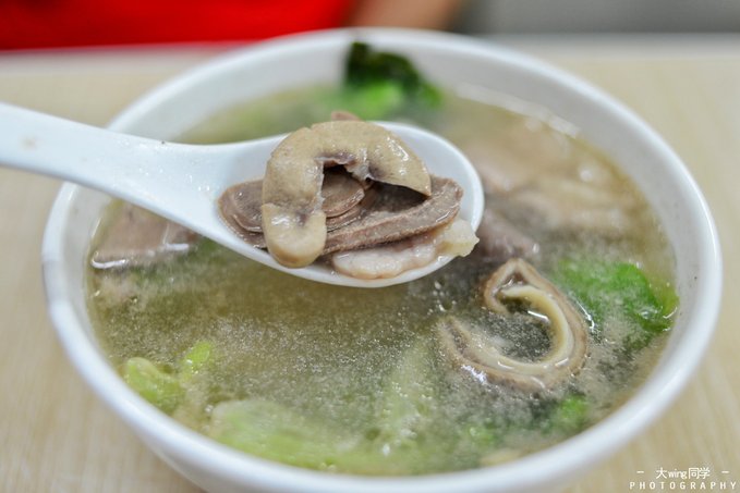 全猪汤,即五及第汤,有猪肚、猪心、猪肝、粉肠、瘦肉五大材料,偶尔会加入猪腰,与三及第汤一样,是腌粉面的最佳伴侣。其实,这个汤在广州又叫猪杂汤,但这里的猪杂分量足,都是当天的新鲜食材,熬出来的汤特别香浓。