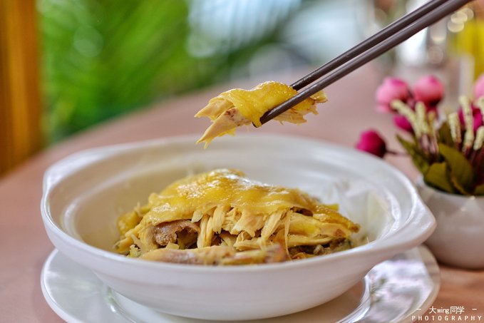 真正的盐焗鸡,是把鸡用纸包起来,放进250度的食盐里,用盐的热量把鸡焗熟,鸡肉也随之吸收了盐的香味与咸味,同时也保证了鸡的鲜味不会外泄,整个过程大概需要一个晚上。这样做出来的鸡越嚼越好吃,连骨头都香飘四溢,而方法一和方法二只是闻起来香而吃起来不香。金苑酒家在选择食材方面也非常注重,精选宁都一公斤左右的鸡,其肉质结实,能提高盐焗鸡的口感。