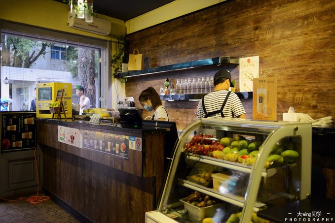 学院里也有小清新的地方,位于南门绿道旁有一间叫“第壹家”的咖啡馆,路过店面时就已被浓浓的芒果香味所吸引。