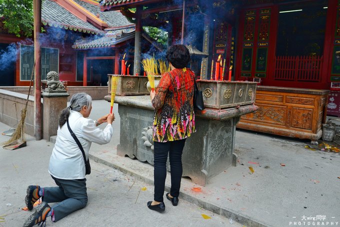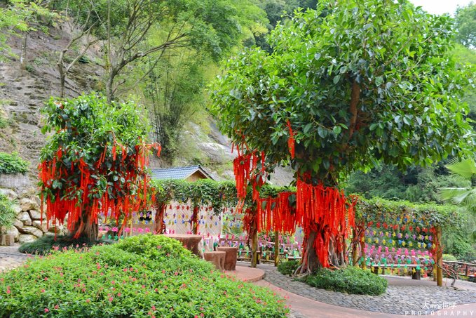 曼谷有四面佛,广东也有灵光寺,不少朋友不远万里前来朝拜。灵光寺,广东四大名刹之一,四方灵气尽蓄于此,相传此处有三绝和三奇,生死树、菠萝顶、顶无叶合称灵光三绝,无笃石螺、片生熟鱼、五色雀合称灵光三奇,目前,三奇已经很少见了。在灵光寺门前,有两棵气势雄伟的柏树,一生一死,一荣一枯,我们称之为生死树。右侧的生柏,相传是唐代高僧潘了拳亲手种植,至今已有千年历史;而左侧的枯柏,虽已死了近四百年,却枯而不朽,两树相映成趣,被誉为灵光三绝之一。