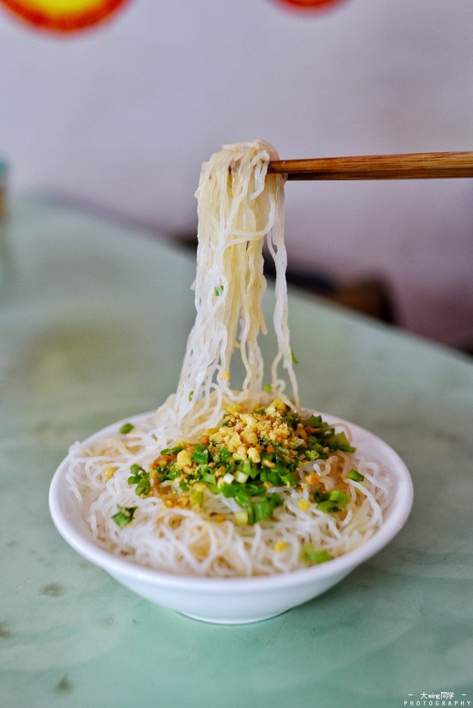 腌粉与腌面的区别大吗?其实就是一个面,一个粉,口感不一样,面条比较粗犷,米粉细腻容易消化,网上大多推荐腌面,因为腌粉其实是腌面的衍生品,而我却对腌粉情有独钟。腌粉,要选择比细粉再稍微粗一点的米粉,据说只有梅州才有,而且必须是湿粉,烹饪时直接下锅,边煮边用筷子搅动,熟了以后捞上来放碗里,再放点预先炸好的蒜蓉,最后把葱花和猪油加上去,食客需自己搅拌再吃。