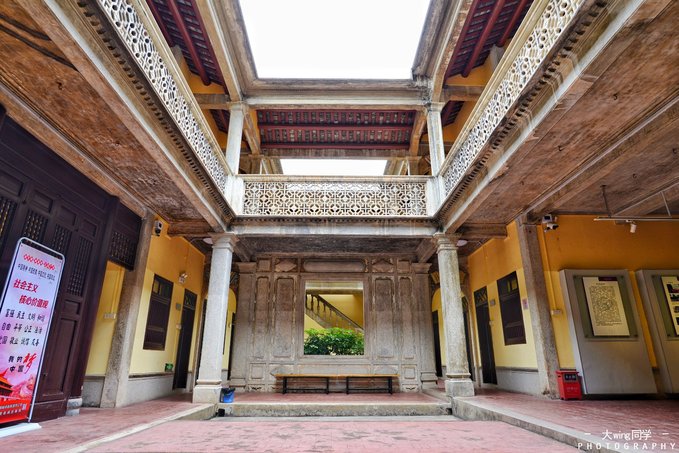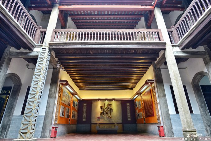 位于主管旁边有一所中西合璧、气势磅礴的古民居,它就是梅州名人廉吏馆,又名达夫楼,建于1935年,原屋主黎达夫先生早年旅居海外,晚年才回梅州兴建了达夫楼,此楼宇与万秋楼被誉为梅城侨房一景。游览了众多古民居,达夫楼可以说是最豪华的,内里空间大,布局疏密有致,楼顶有一座西洋大钟,但遗憾的是,楼宇竟然加了顶棚,与楼宇本身的风格不协调,真的大煞风景。馆内除了陈列梅州的名人事迹,还加了很多红色革命元素。