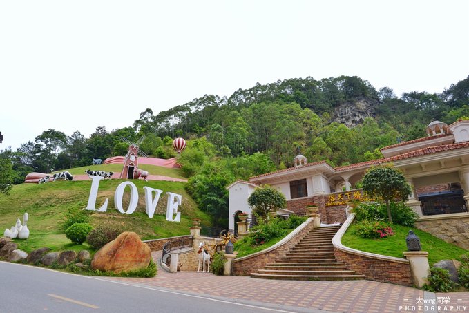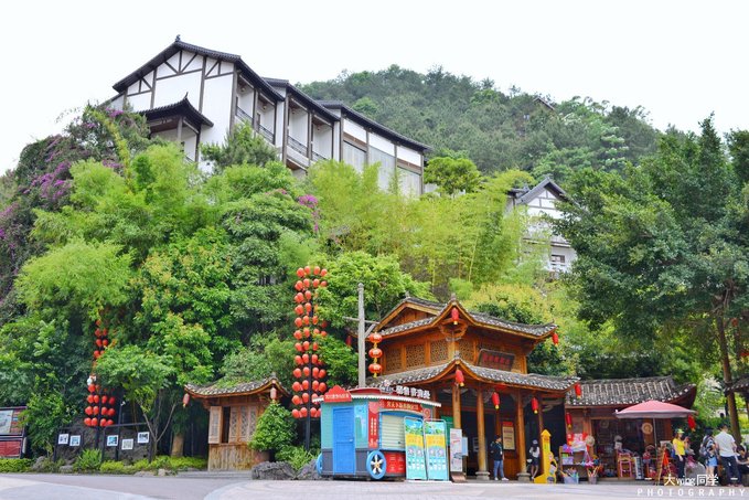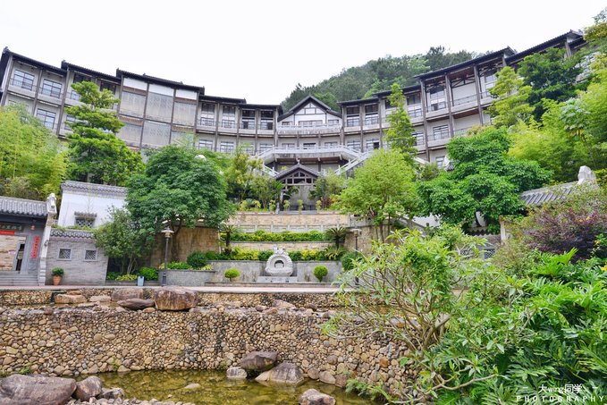 来的时候天气不好,游客很少,我们两人几乎包场了,这里分了好几个区域,集生态、休闲、度假、居住和旅游于一体,它们大多依山而建,很有气派,但唯一让我止步前进的就是门票价格,120元/人可能是梅州当地最贵的门票了。景区内有一家五星级酒店——梅州客天下国际大酒店,五一期间最便宜的房型也只需六百多,而平日房价不到五百块,凭房卡还可以免费畅游景区,想到这里,我便打消了买门票的念头,留着遗憾离开。