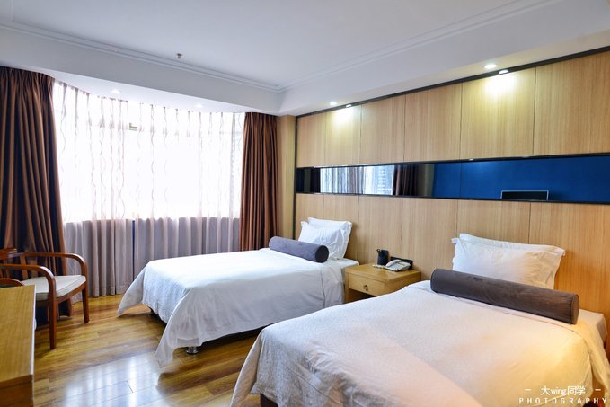 客房风格虽然简约,但也不失优雅,由于住在11楼,所以整个空间都非常采光。虽然住在高层,但窗外景色却一般,对面是一家小医院,而梅州的高楼大厦也很少,看见的都是以平房和旧楼为主,偶尔能看见飞机起降,毕竟离机场只有5.3公里。