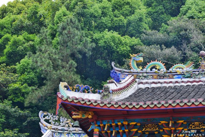 最后一绝“顶无叶”,大雄宝殿背靠青山, 周边绿树繁荫,但屋顶上却无一落叶,十分神奇。我和朋友观察了许久,还真的没有发现树叶,如果想证实这一点,可以秋季再来看一下。