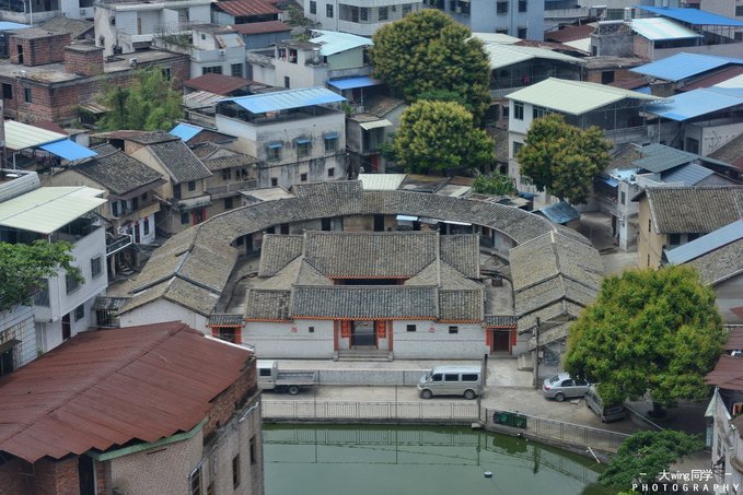 梅州是客家人的最大聚居中心,据统计,当地的客家围屋多达2万多座,大埔的花萼楼、南口镇的南华又庐和丙村镇的仁厚温公祠都是当地比较著名的围屋,但是离市区较远,交通不便。如果想感受一下围屋的氛围,一些隐藏在市中心的围屋也许是个不错的选择,对比圈起来的景点,这些地方更接地气,更原汁原味。在我住的迪雅酒店对面,就有一家小围屋,半月圆型的建筑布局使它与众不同。