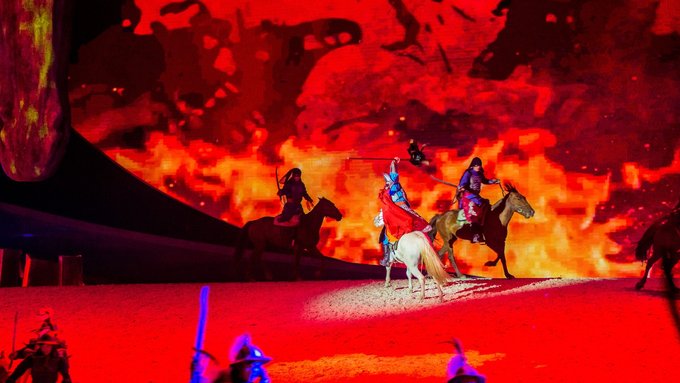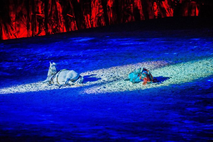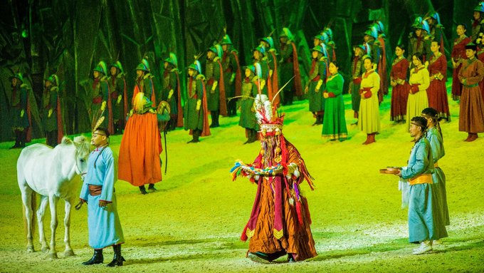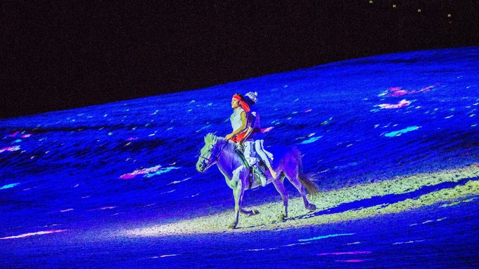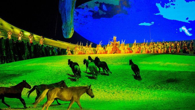 之前大型的实景演出也没有少看过,有的讲究表演者精湛的技艺,有的讲究舞台的灯光特效。而《 蒙古马》给我最大的震撼并不是这些,而是上百匹骏马的配合演出,这些游牧民族最好的伙伴,演技甚至不输某些当红的小鲜肉,说倒就倒,说起就起,很难想象台下的训练花了多少功夫。