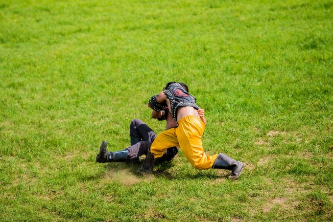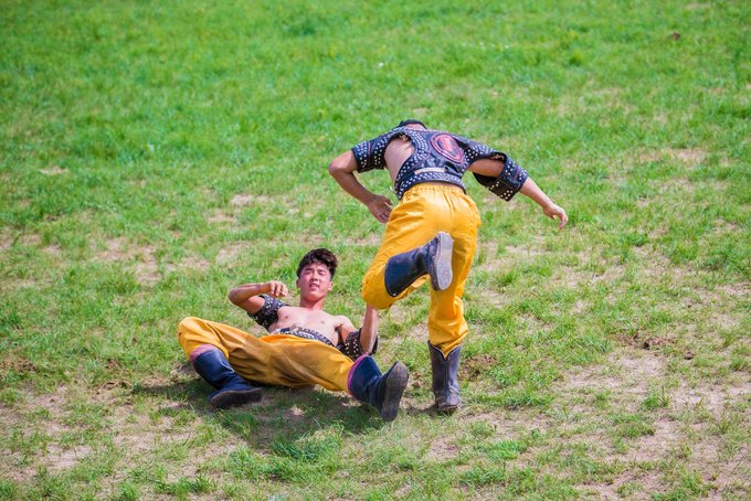 来到 蒙古 汗城,除了拍照还不能错过的就是观看小型那达慕的表演了。“那达慕”可能有些小伙伴不太了解什么意思,其实我也是这次来才知道。它是蒙语,有“娱乐、游戏”的意思,常见的项目是骑马和摔跤,以来表示丰收的喜悦。因此“那达慕”大会也是 蒙古 族历史悠久的传统节日,在 蒙古 族人民的生活中占有重要地位。我们这次看的虽是演绎,但精彩程度可不打折扣,看的人热血沸腾,甚至想亲自下场比划一番。