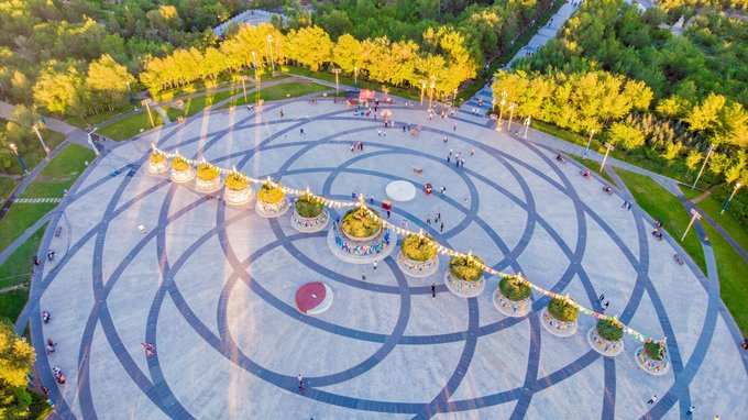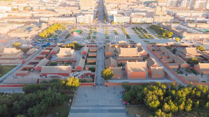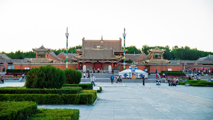 傍晚时分,我们回到了市区,来到了贝子庙。几乎每座城市都有自己的文化广场,休闲公园这类场所,而贝子庙在 锡林浩特 所扮演的角色就是这个。不过它历史悠久,始建于清朝乾隆年间,除了日常的游客,每到傍晚也会有大量的市民来此散步休闲。