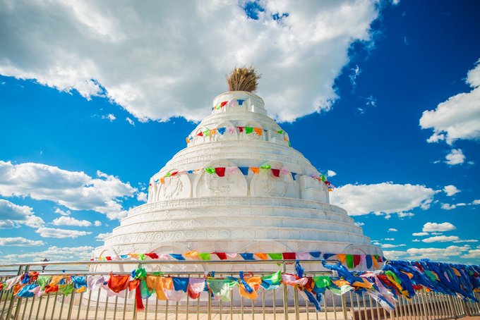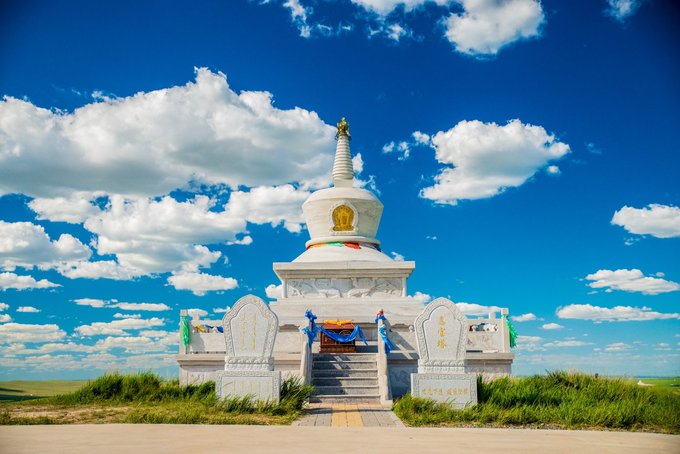 白塔和敖包是内蒙很重要的两种文化符号。而下面这座通体汉 白玉 的敖包也被称为“天下第一大敖包”,造型精美,也寓意十足,上面的每一层都有不同的雕刻和象征。这些必须都要听导游说才能够体会,在这里我也很难用自己的语言把碎片的记忆拼凑起来,对文化感兴趣的小伙伴,在逛完了草原风光,可别错过了这个涨知识的好地方。