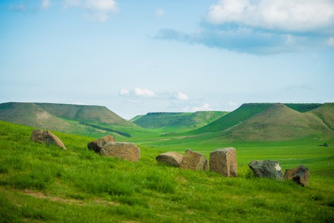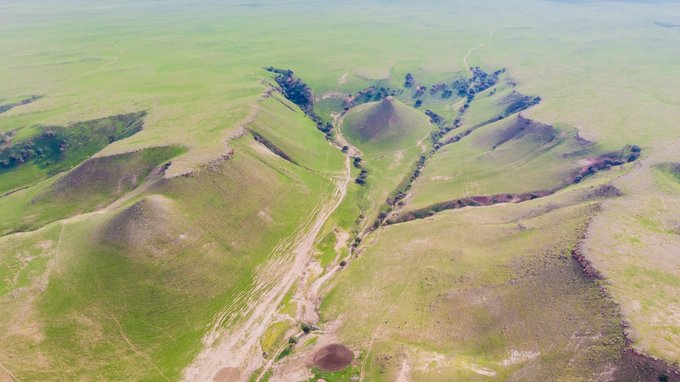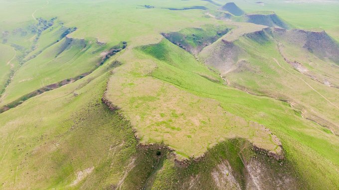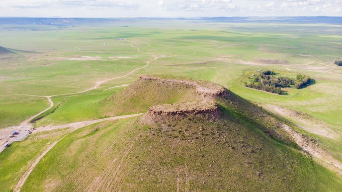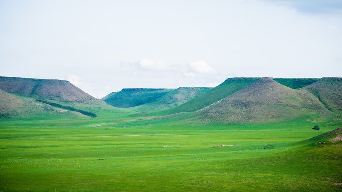下午我们来到的是 平顶山 。 平顶山 不是在 河南 吗?那是地级市的名字,而锡盟的 平顶山 是名副其实的平顶的山,远远望去,你就已经会惊叹于那平如刀削的山顶了,据有关专家考证, 平顶山 是亿万年前火山喷发而成,亦称熔岩台地,并不是人为所造。我也派我的无人机升空拍了几张照片,倘若时间充裕(其实是懒!),我特别想爬到山顶躺下,享受这可能是最大最平的天然床垫。偷偷告诉你们,我还能拿无人机赶羊了,场面壮观特别过瘾,但不提倡长时间操作,因为羊跑丢了可是要赔的,而且赶羊的时候他们也是处在一个被惊吓的状态。