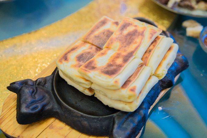 一日之计在于晨,拖着疲惫的身体下了早班机,这时候只有美食才能让我振作起来。于是,我们上了车直奔格日勒阿妈,这是一家当地特别有名的早餐店,在许多地方都有连锁,而且也被国内知名媒体评为“ 中国 100家最好吃的餐厅”之一,且是内蒙唯一上榜品牌。这样的名号也是一个吃货出来旅行所不能错过的。