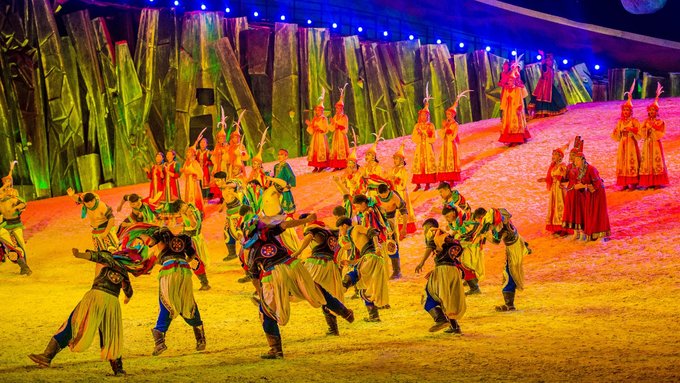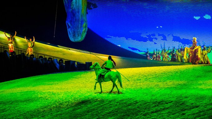 晚饭后我们去看了一场大型实景演出《 蒙古 马》,我一直认为去到一个地方,想了解它的文化有两种非常好的方法,一种是去博物馆,另一种就是看当地特色的实景演出了。第一种相对来说比较乏味,很多小伙伴都提不起 来兴 趣,也需要更多的解说和思考;而第二种就更加直观,适合更类人群,因此我们就来了。