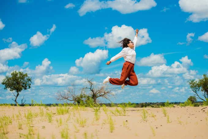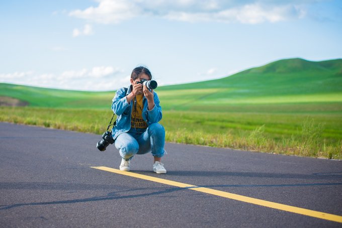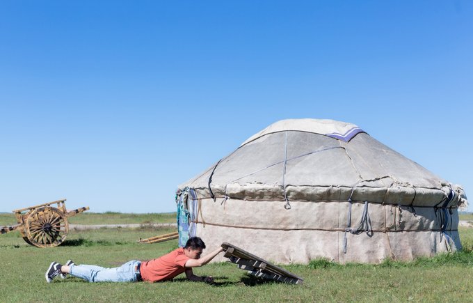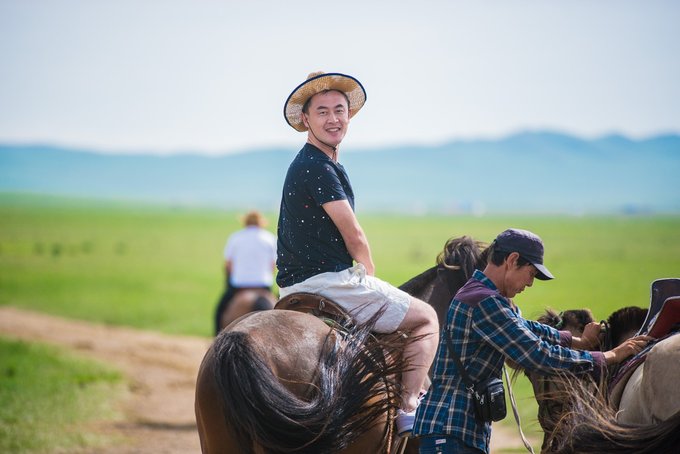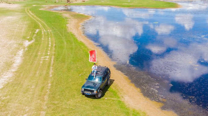 浑善达克丰富的地形也特别适合凹造型拍照,哪怕是随便遇见的一个水泡(pao,读第一声)子,也能拍出新的高度,蓝天白云,视野开阔就是最难得的拍摄条件。