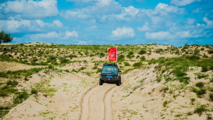 锡盟的第一顿早餐吃的像顿正餐一样,接着我们就奔着浑善达克沙地去了。来到草原我们第一站是沙地?没错,确切的说浑善达克沙地景区是一个草原与沙漠相结合的地方,通过其复杂的地形,可以玩出许多的花样。最爽的莫过于开着越野车在颠簸的道路上行驶了,相信每个男人都会喜欢这样的粗野。