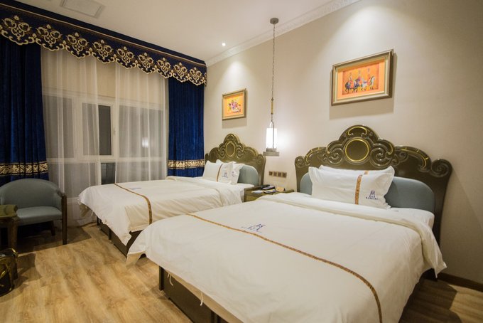 在广阔无垠的锡盟,住宿其实还是蛮简单的,所以前面就没有花篇幅去特意交待。因为你去到哪里,差不多就要住在几个固定的点。 蒙古 汗城可以体验特色 蒙古 包,而 乌拉盖 草原可以住在 乌拉盖 迎宾馆,据说当年冯绍峰也是最在这里的呢。推荐一下最后一晚在 锡林浩特 市区的 蒙古 利亚酒店吧,里面的装修风格可以用华贵来形容,包括房间在内也极具 蒙古 特色,还有他们家的自助早餐据说有100多种,惊叹于锡盟的人对早餐的执念,只可惜第二天要乘早班机离开,也未能坐下来细细去品味。