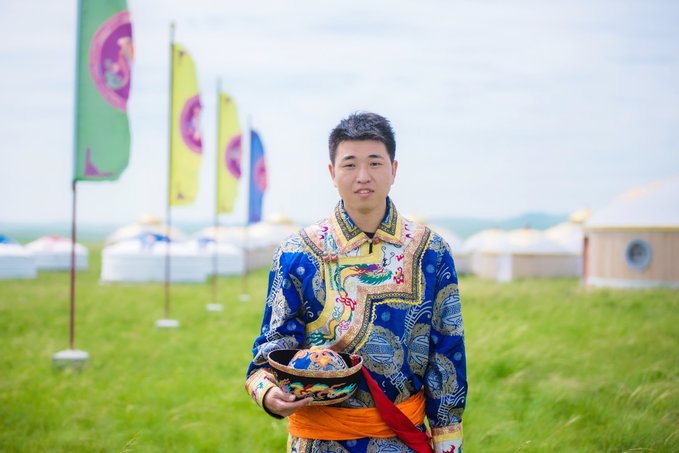 在内蒙, 蒙古 袍子都是非常珍贵的,我身上穿的这种衬衫领的款式多在乌珠穆沁旗出现,特点是五彩缤纷,绣线多,撞色系。因为身上的手工刺绣非常繁琐讲究,一套袍子的价值也在1到2万元。而且 蒙古 人借袍子还有个讲究,就是袍子可以借,但扣子不借。因为扣子一般都是银质的,有些价值且容易丢失。穿上这么华丽的袍子,顿时觉得自己秒变《射雕英雄传》里的拖雷安达,顺势就是一个弯弓射大雕的造型!据扯,给下面图片点赞,今晚你就能做金刀驸马,哈哈!