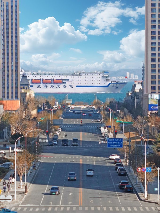 港东五街 此次出行也是让我最震撼的场景就是这里了,大连东港五街位于中山区东港商务区,全长1.5公里 。街道南端高北端低,站在高处远眺,马路直通大海 。每日上午10时50分左右,常有商船或客轮驶过,与街道两侧高楼构成绝美画面 。周边景色美观,吸引众多摄影爱好者参观。 。