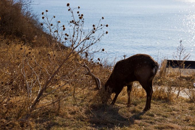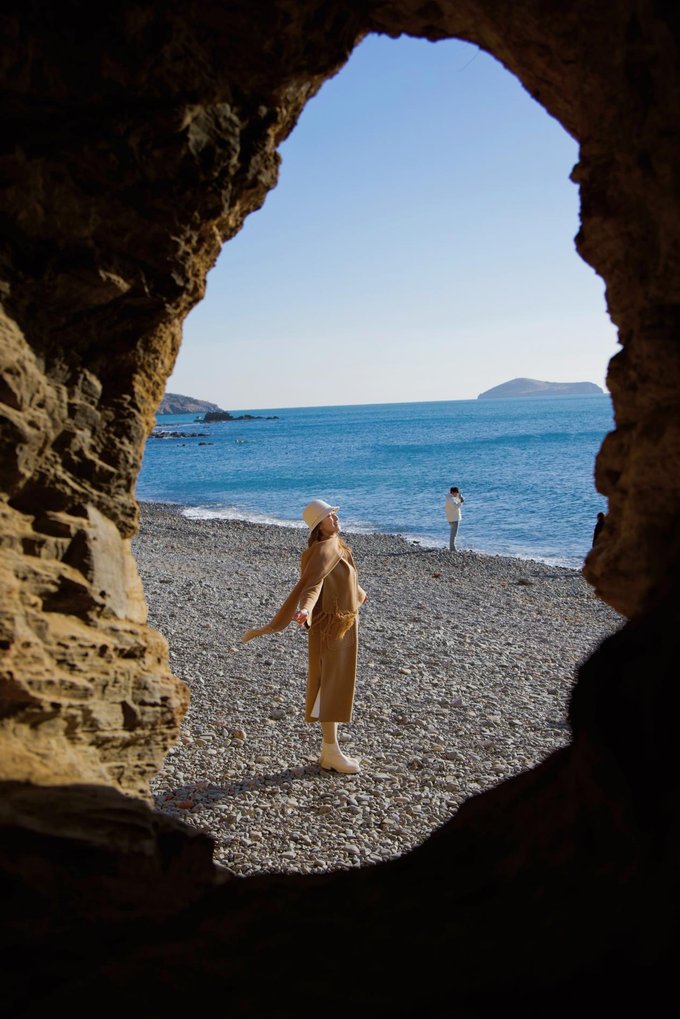 银沙滩有两个网红机位,到银沙滩左转会看到网红山洞,再继续直走可以找到通向大海的台阶小鹿,在山坡上还可以偶遇小鹿哦!
