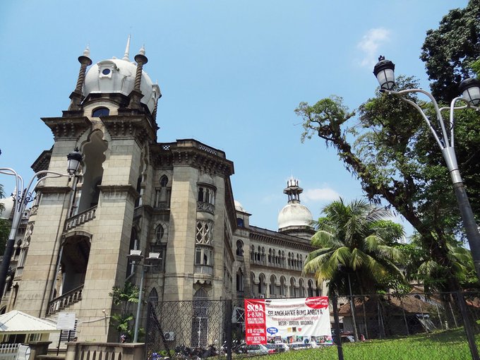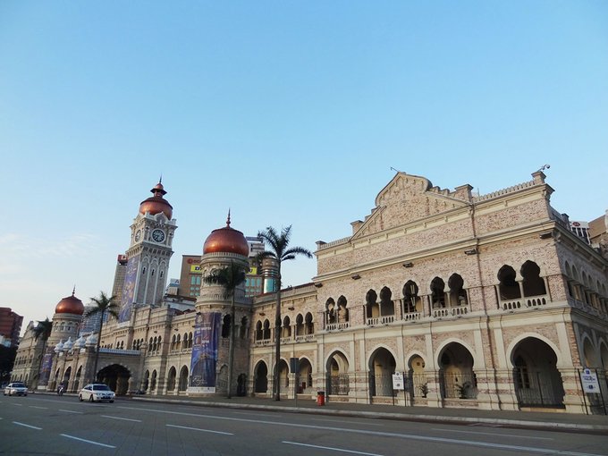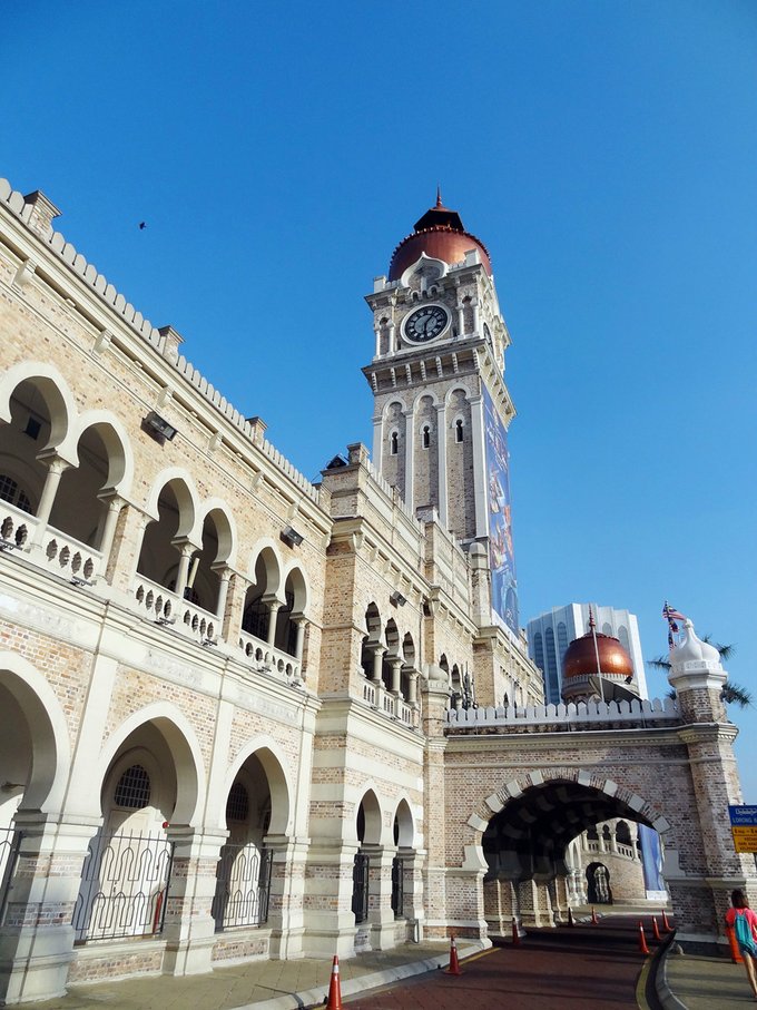 苏丹阿都沙末大厦(Sultan Abdul Samad Building),建于1897年,当时是英国殖民者的政府办公楼,目前是马来西亚政府的司法机构。这座拥有浓厚摩尔色彩的大厦也是吉隆坡重要地标之一,位于独立广场对面,虽然内部不对外开放,但游客都会来这里拍照留念。大厦中央有一个40米高的钟楼,因酷似英国的大本钟,所以被称为“马来西亚大本钟”。