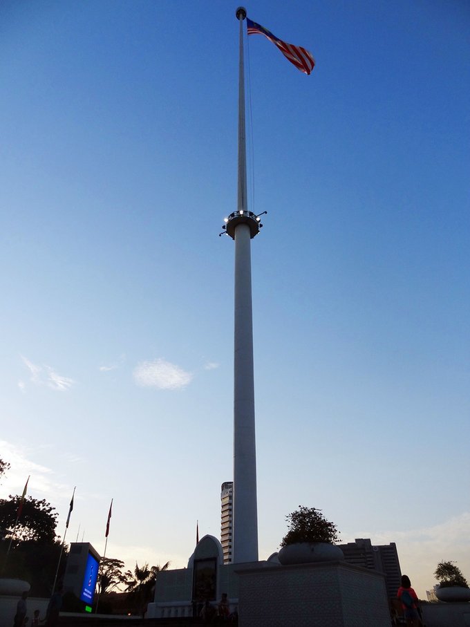 这支高100英尺的旗杆,纪念马来西亚独立的历史时刻。