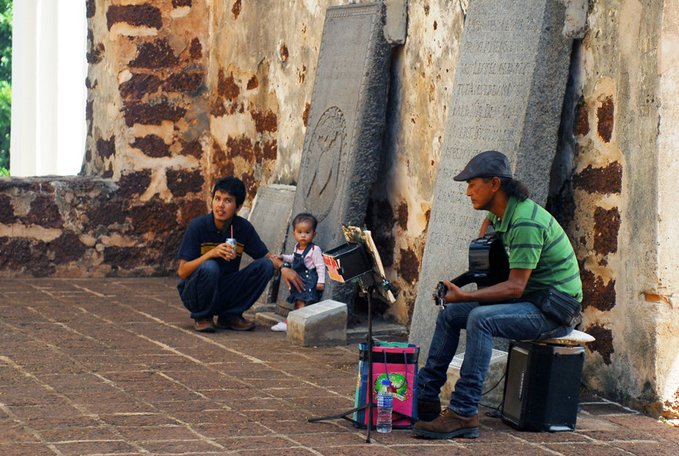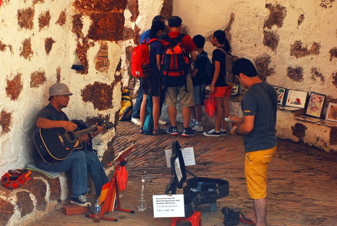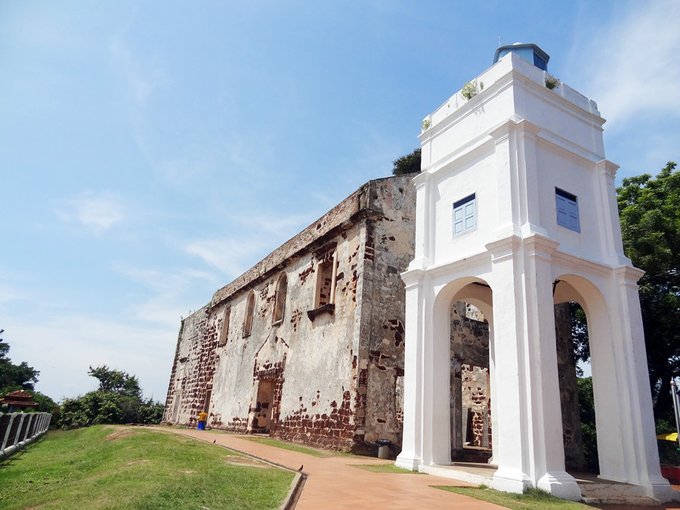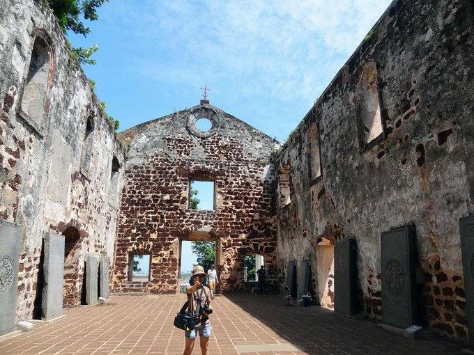 由葡萄牙人建造的圣保罗教堂(St. Paul's Church)位于山顶,这是欧洲人在东南亚修建的最古老教堂,因传教士圣方济埋葬于此,所以门前立有他的无手塑像。教堂屋顶早已塌陷,墙砖外露,倍感萧条,里面偶尔有歌手弹唱,沧桑的歌声在四面回响,仿佛诉说着曾经的历史。