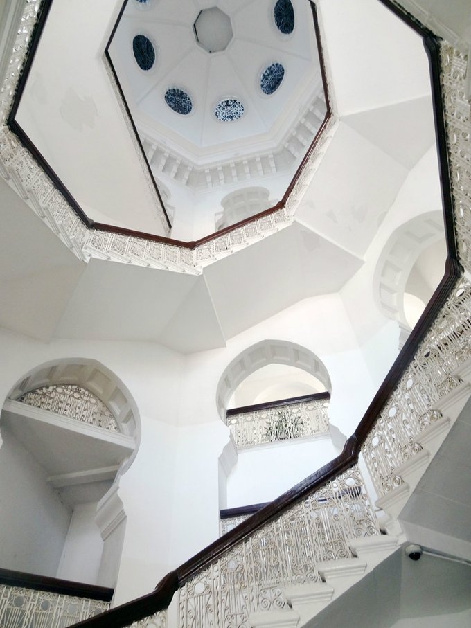 进了内部,有一条蜿蜒的楼梯直达穹顶,四面都有监控,可以问一下管理员让他允许你拍照。