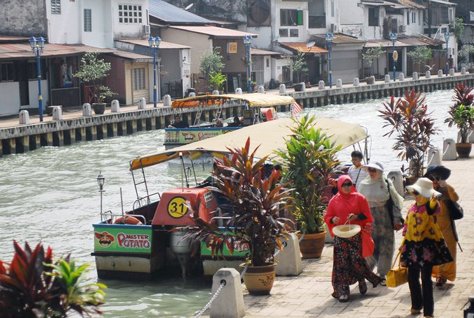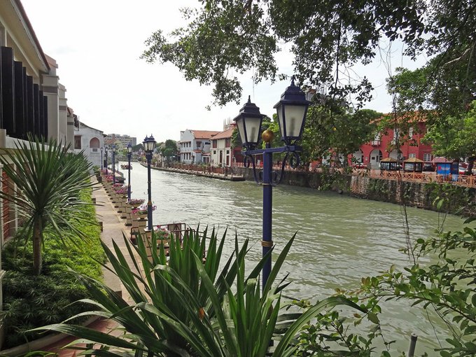 马六甲河(Malacca River),位于红屋区与鸡场街之间,河水比较浑浊,两边都有人行道,许多酒吧沿河而建,晚上会比较浪漫,可乘坐船游览,价格成人15MYR,小孩7MYR。