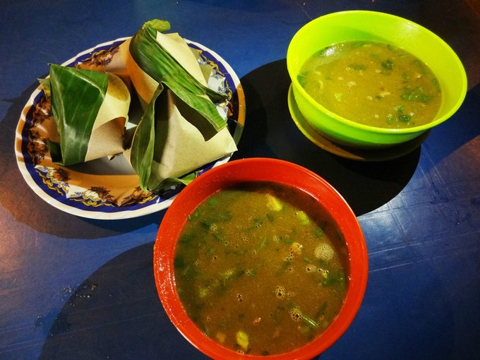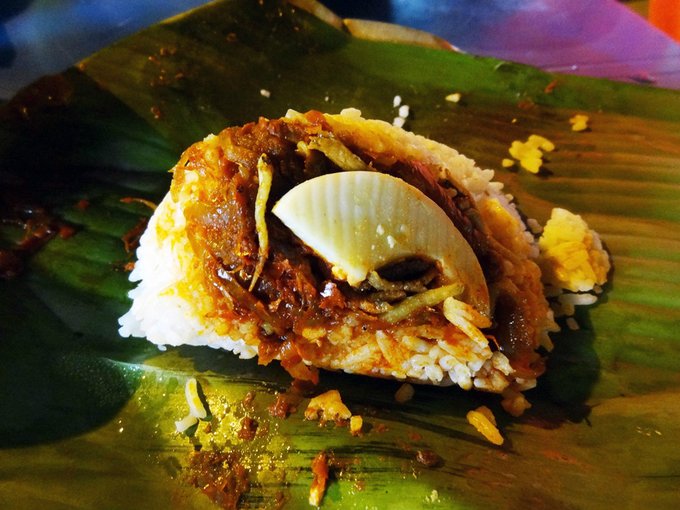 夜幕降临,华灯初上,心里默默被双子塔所牵引,它是来吉隆坡最不能错过的夜景!在饱览美景之前,先要填饱肚子,我们选了在路边的印度大排档,难以想象自己作为一个南方人竟然把满满的咖喱汤一口气喝完,虽然很辣,但非常美味!用树叶包裹的塔型饭团,有点像咋们国内的粽子,一碗汤一个饭团就能填饱肚子了,这一顿二人花了17马币。