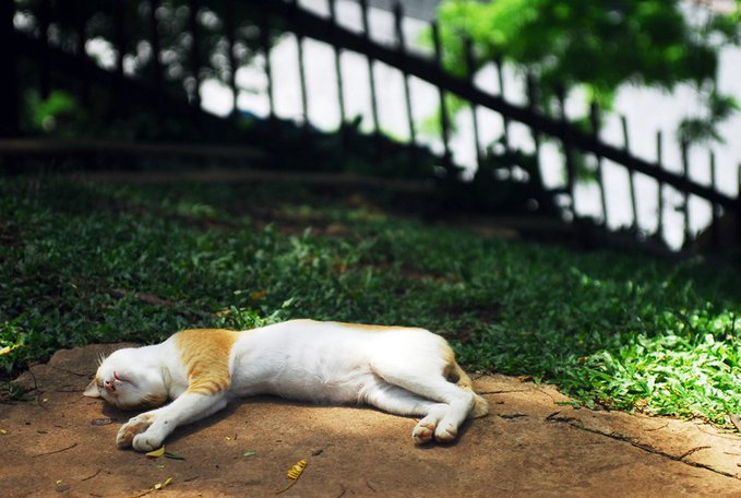 随后,又回到荷兰红屋区,沿Jalan Kota路一直走到圣地亚哥古城门,由此上山可到达升旗山(St. Paul's Hill)。升旗山,又名西山或圣保罗山,是当地的最高峰,站在山顶的观景台可以俯瞰整个马六甲海峡。山不算高,爬起来不费劲,途中发现很多小猫肆无忌惮地在睡觉,完全忽略身边的路人,可见这地方是多么的安宁舒适。