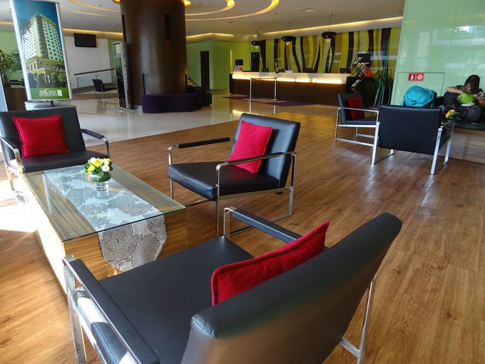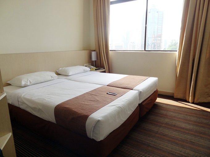 早上一起来,毫无留恋的告别Chill Inn Hotel,大概9点就到了普渡昂卡萨快速(Ancasa Express@ Pudu),252元/晚,在富都中环车站(Pudu Sentral Terminal)上面,可以从这里乘坐机场大巴往返机场(在文末有详细介绍),步行5分钟可到达捷运LRT-S(Star)线的Plaza Rakyat地铁站和茨厂街,楼下有万宁等商品,总的来说很方便,平日两百多的价格非常公道。酒店chick in在UTC的4楼,大堂很宽敞,前台办事效率有点低哦。预订的是标准双床房,有免费wifi,房间内都铺了地毯,干净卫生,窗户很大,外面的风景不错,能清楚看到吉隆坡塔,总体感觉不错。酒店不能提前chick in,早到的朋友可以寄存行李到前台,先去附近游玩,到下午2点再回来拿房。
