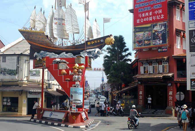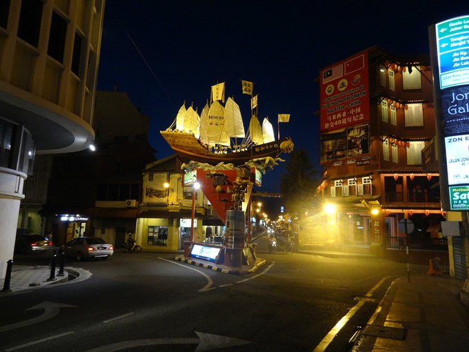 鸡场街(Jonker Street),其实就是china town,全长约400米,两边商铺林立,店面的营业时间通常在早上10点到晚上8点,很多华人居住在这。路口耸立着郑和宝船模型,为了纪念明朝三宝太监郑和(在1405~1433年间,他曾七下西洋,其中五次经过马六甲,并在此设置贸易港口)。旁边的三叔公(San Shu Gong)其实就是游客买手信的地方,种类还是挺多的。