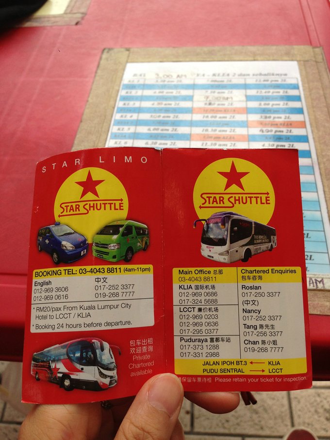 从曼谷飞到吉隆坡的飞行时间是一个多少小时,下机已经是下午一点半了。亚航的飞机都在KLIA2航站楼,可从这里坐直达巴士到马六甲。由于在机场买电话卡时遇到点问题,所以错过了下午2点15分的班车,需要等到4点多才能乘坐下一班车,白白浪费了2小时啊!心疼!