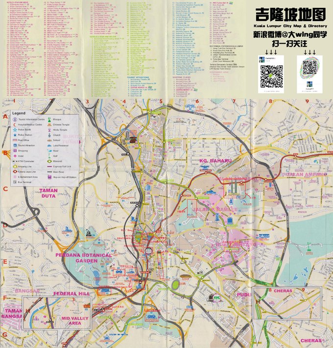 吉隆坡高清地图,主要景点已用红框圈起来,并翻译了中文,点击可查看大图。 地图下载9.4M:http://pan.baidu.com/s/1mgYrYje