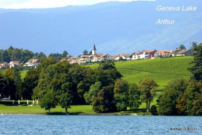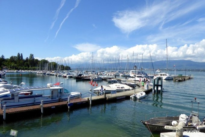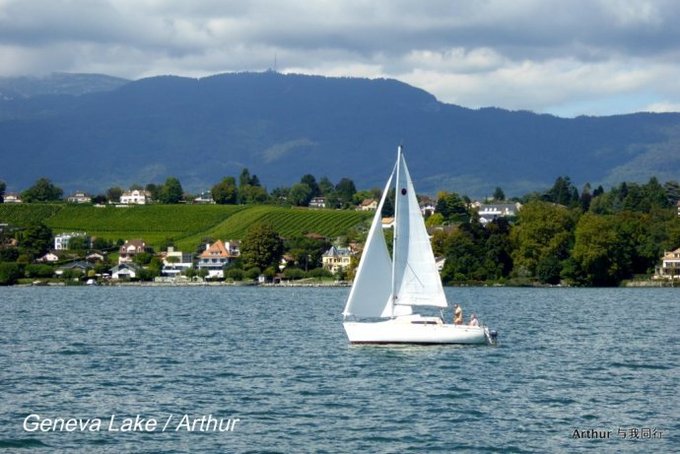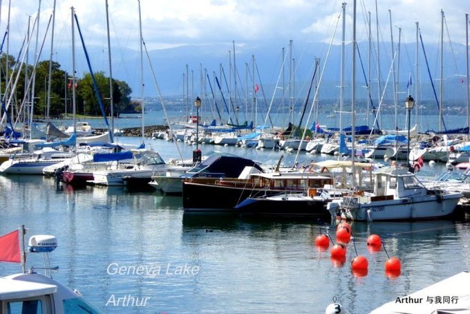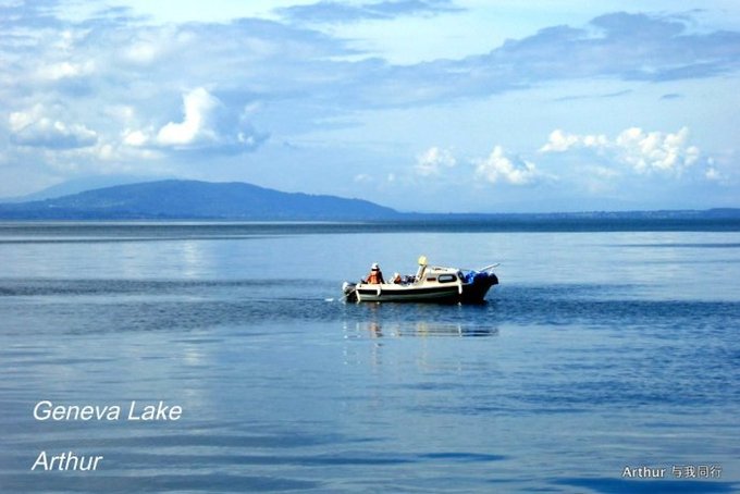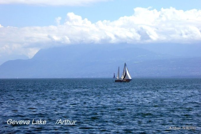 日内瓦湖,又称莱芒湖,湖面呈新月形,湖北岸和东西两端属于瑞士,南岸则属于法国。而瑞法分别占有湖面的比例为6和4。 莱芒湖东西长约75公里,南北最宽处约14公里,水面积约582平方公里,是阿尔卑斯湖群中最大的一个,也是欧洲面积第二大的淡水湖,仅次于巴拉顿湖。 日内瓦湖的西南端就是国际名城日内瓦,因而人们更喜欢称之为日内瓦湖。因为大湖的自然调节缘故,这里气候温和,温差变化极小,湖南面就是白雪皑皑风光秀丽的山峦,湖北面则广布牧场和葡萄园,自然风光极美。 日内瓦湖湖水漪涟,烟霞万顷,波面似镜,碧蓝清澈。水不扬波,终年不冻,色深蓝,清澈。湖中是天鹅和水禽嬉戏水上,游艇和彩帆游弋湖中,蓝色的湖面广阔而辽远,飘荡在水上那叫宁静而平和。