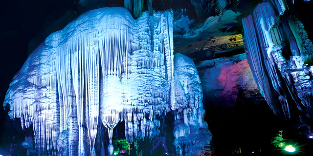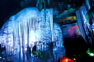 桂林山水甲天下,芦笛美景堪最佳。之所以叫芦笛岩,是因为这里有一种芦苇草可以做成笛子。在这个溶洞里是一个十分壮观的世界,碳酸盐沉积形成了各种钟乳石、石笋、石柱和岩层。通过彩色灯光的照射,让这里的成为了一个光怪陆离的世界。