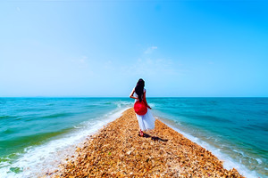 月牙海滩除了是天然的海水浴场,还是全国罕见的砾石滩,到处是色彩斑斓的球石。月牙湾最有情致之处就在于它的球石,这里可以说是一个珠光宝气的球石世界,洁白的如美玉,晶莹的赛琥珀。整个海滩就如珍珠玛瑙铺就,让你流连忘返。