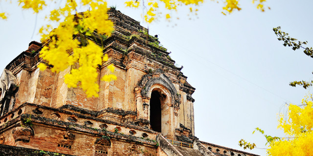大佛塔寺因为一座极具视觉冲击的大佛塔而闻名,创建于1411年,在清迈市内六大寺庙中极为著名,它与帕辛寺并列为清迈地位极崇高的寺庙。寺庙的门口点缀着蛇和孔雀的装饰,内部有巨大的佛像。