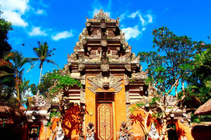 皇宫坐落在素有巴厘岛艺术重镇的乌布里,始建于16世纪,由著名的艺术家们一手设计。乌布皇宫内部是不对外的,因为皇宫里仍有皇族居住,游客只能在一进门那里转转拍拍照,开放区域不大,用不了多久就能看完。皇宫虽小,但古旧,沉稳,建筑很有特色。内部就像个花园,还有一些凉亭式建筑和雕像,充满了巴厘风情。皇宫里还有一座酒店,每晚,这里有代表巴厘岛最高水平的舞蹈团表演传统舞蹈。