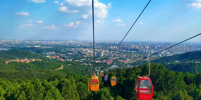 天山位于东天山北坡,这里树木森森、百卉吐英、川流不息。初霁,气息清幽,天边云彩变幻多端,那颜色有火红、桔红、丹紫、鹅黄、乳白、天蓝、翠绿……那形状是浪涛、花朵、丛林……其薄云如纱,轻抚山峦,山峦如屏,或近或远,远明近暗,如梦如幻,不失为金秋时节的好去处。