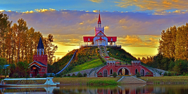 伏尔加庄园坐落于哈尔滨东南郊区的成高子镇,是一座俄罗斯文化主题风景园。走进庄园,翠绿的草坪、齐整的树林映入眼帘,你可以走着通往古堡的长桥、欣赏各种俄式建筑和欧式雕塑,或是观看纯正的俄罗斯歌舞(仅在冬夏旅游旺季演出),感受各种异域风情。这里的俄式风光也让庄园成为婚纱摄影取景胜地。
