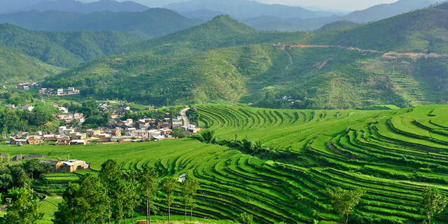 坪山梯田旅游景区位于梅州市大埔县大东镇坪山村,地处闽粤两省四县交界处,是集“观梯田风景、饮神奇泉水、瞻将军故居、游特色民居”于一体的国家旅游景区。坪山村历史文化底蕴深厚,人文资源丰富,文物古迹众多,自然生态优美,因其有始建于元末的形态原始、线条优美的千亩梯田而享有“广东元阳”的美誉。2011年坪山村被评为“广东省古村落”,同时,坪山梯田被评为广东省乡村旅游示范基地、省级摄影家采风创作基地。2015年被评为梅州市十佳旅游赏花旅游基地。