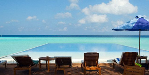 第三天安排的是跳岛游,可以领略不同的海岛风情,我们这种屌丝也可以通过这种方式近距离接触高大上的度假村。如果经费有限只去一个岛的话,推荐双鱼岛。这是个五星岛,上岛费30美元(午餐自助40美元,自愿可选),快艇费30-45美元,有一大一小两处水屋,景色十分漂亮,还有无边际游泳池可以游泳拍照,在这能找到在马尔代夫最想要的感觉。
