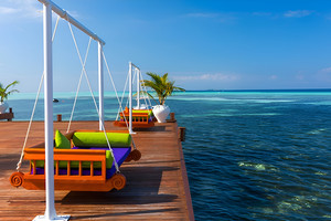 瓦宾法鲁岛以宁静和浪漫着称,这里除了湛蓝的海水、美丽的椰林外还有的最大特色就是它每一个别墅都独享一片洁白的沙滩。