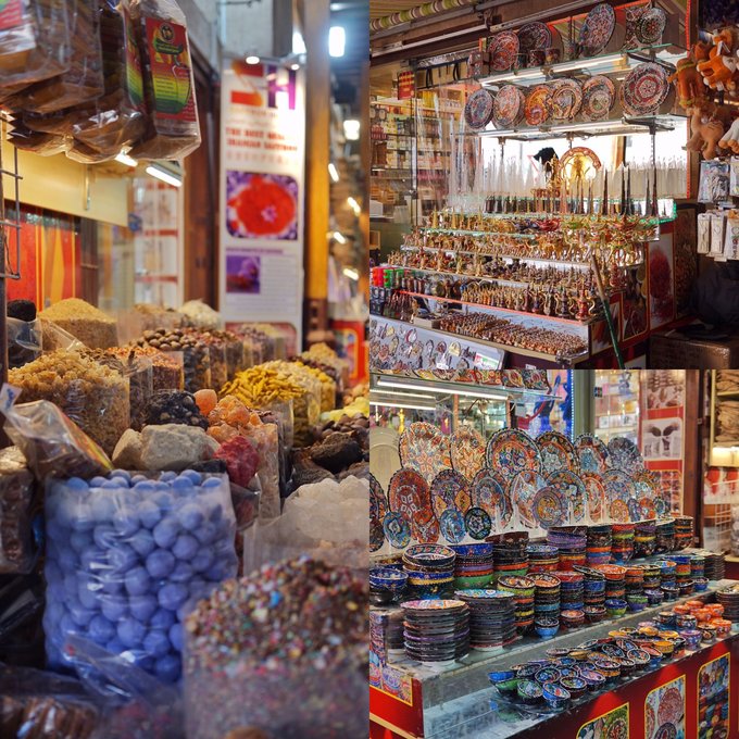 香料市集距离黄金市集很近,可以安排在一起游览~因为越来越多的中国游客选择去迪拜旅行,所以里面的很多商家都会一两句招揽顾客的中文,超级可爱~当地特色的地毯、装饰品、糖都可以当做伴手礼~