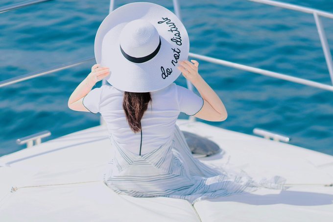 出行前精心挑选的草帽在这里就派上用场了,不仅可以防晒,也是凹造型的最好利器。游艇和草帽,完全满足我心里女主角的电影情节。