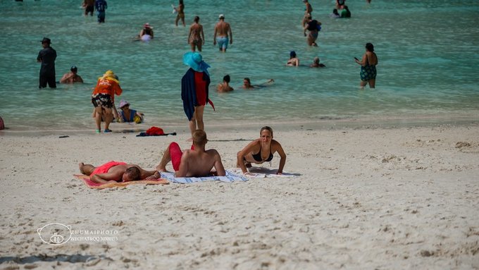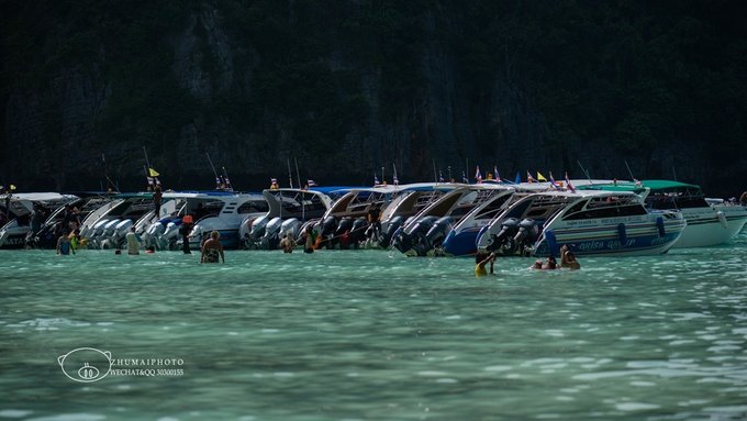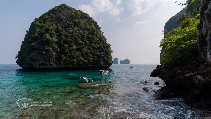 浮潜后,上船休息了一会,去小PP岛,小PP岛与大PP岛相隔约2公里,小PP岛平潮时其面积约为1.291平方公里,四周耸立着悬崖峭壁,地势险要,因此罕有人烟。天生丽质的海滩,皮雷、玛雅、罗沙玛,新月般的海湾,深蓝色的海水,艳丽多姿的海洋生物……引来莱昂纳多·迪卡普里奥主演的电影《海滩》在玛雅湾取景,这处不为人知的秘境因而名声大噪。