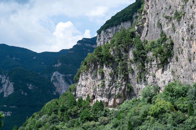 这座“鸳鸯桥”便是位于云丘山景区的高空玻璃桥,整座玻璃桥悬于两座高峰之间,两侧为悬崖峭壁,中间横穿云丘大峡谷,自去年十一期间开放后,吸引了大量周边游客的到来。