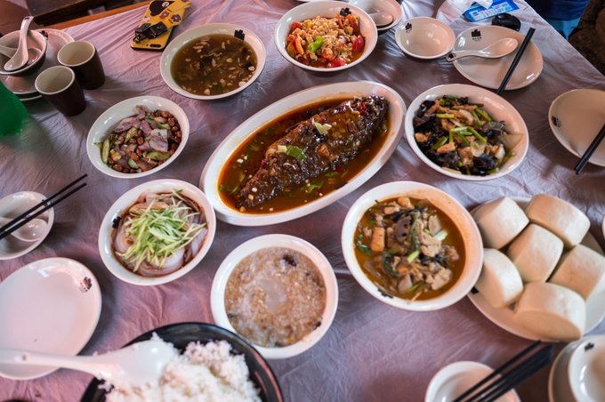 对于上几道菜也非常考究,一般家宴四碟子八碗,事宴六碟子十二碗,盛宴为八大八小酒围碟,荤素搭配,其中三荤三素三干果为云丘水席最高礼遇。 满满一大桌子菜,都是当地特色菜肴,因为我是北方人,所以感觉饭菜非常可口,而同行的还有南方的朋友,就不那么习惯了,主要体现在馒头上,毕竟南方以米饭为主。